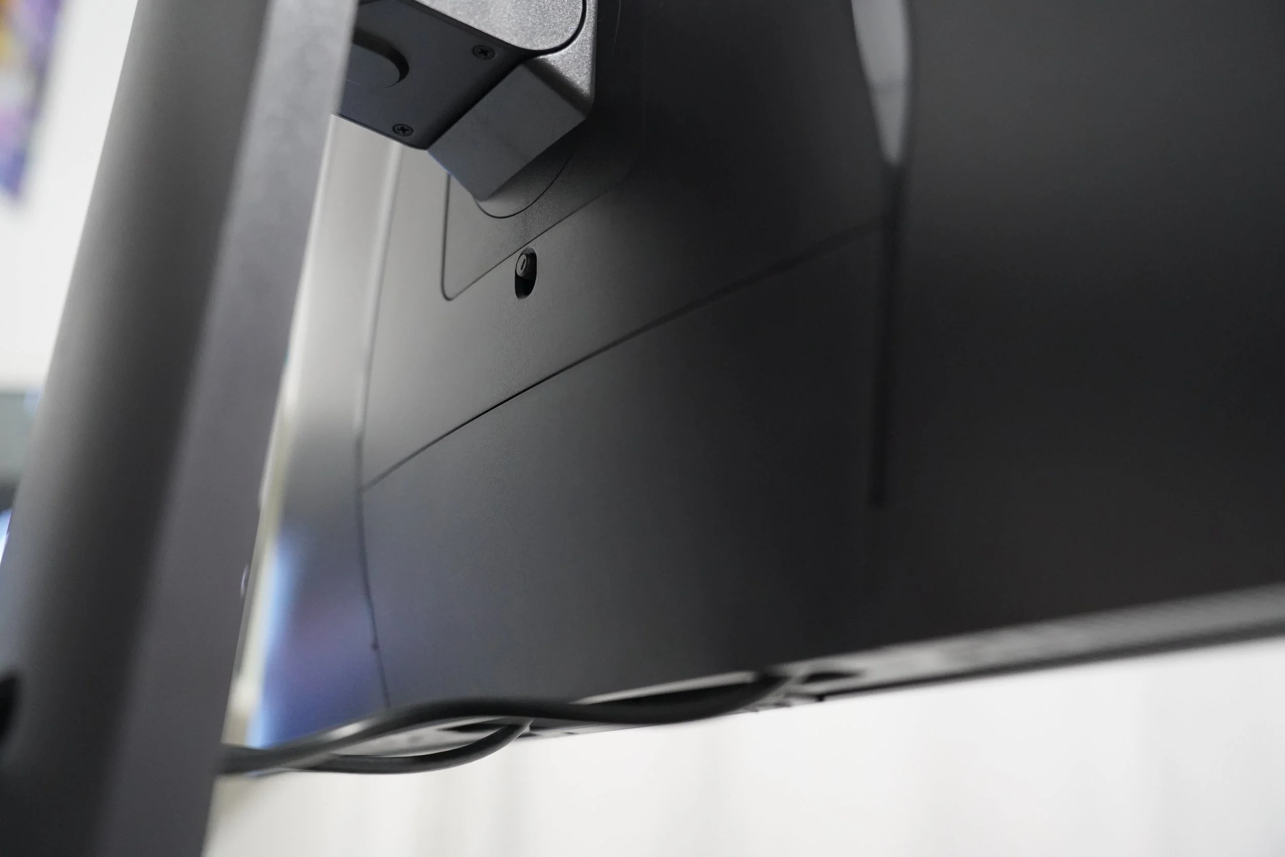 The stand includes an easy way to route your cables, and can be easily hidden by lowering the level of the monitor.